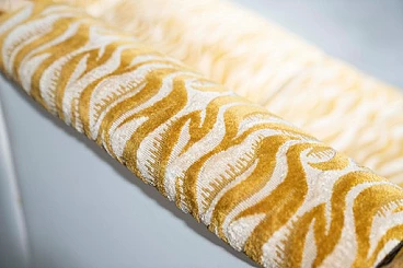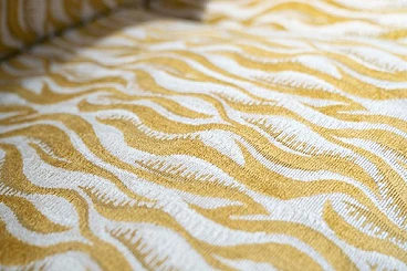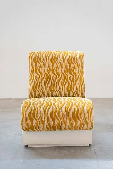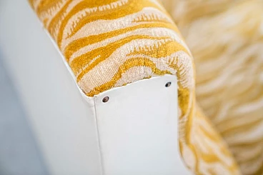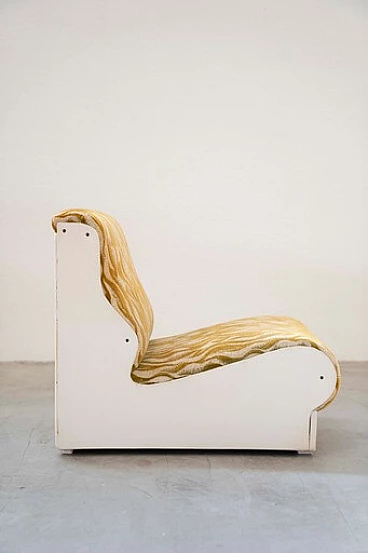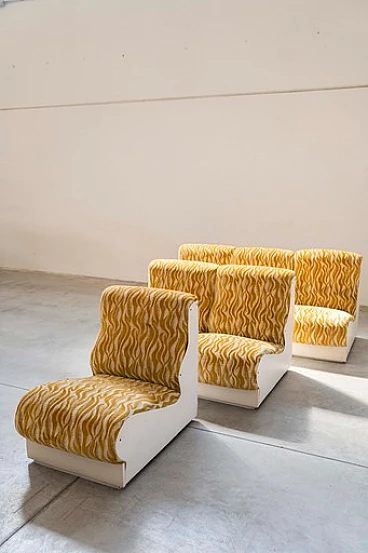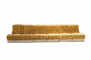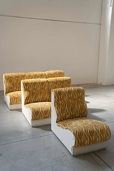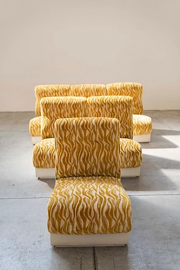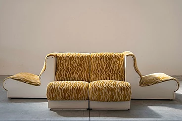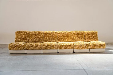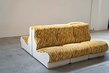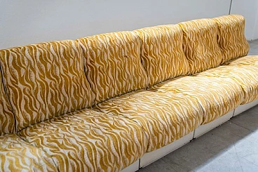 Divano modulare bianco e giallo a sei posti, anni '70. Realizzato in similpelle, poliuretano, PVC e metallo. Altezza della seduta: 46 cm.