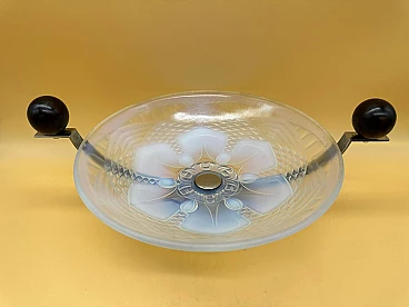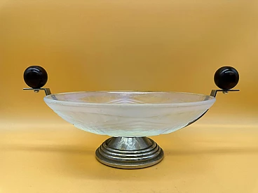 Centrotavola Art Déco in vetro e legno macassar, inizio '900