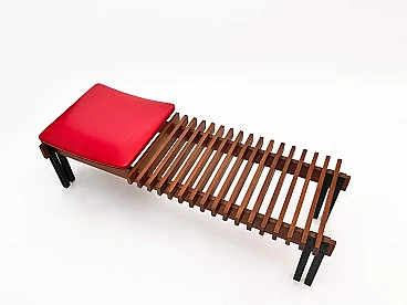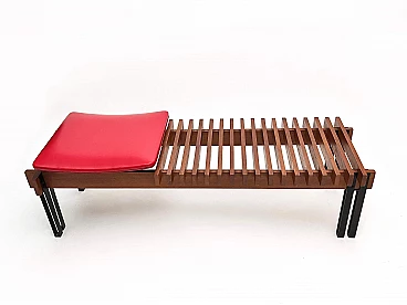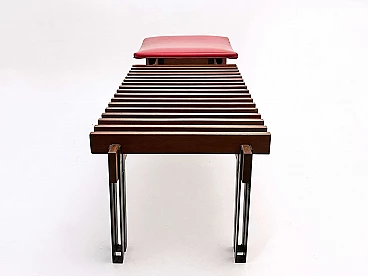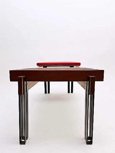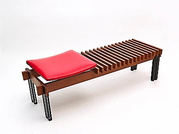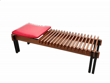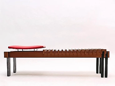 Panca in teak e acciaio con seduta in skai di Inge e Luciano Rubino per APEC, anni '60