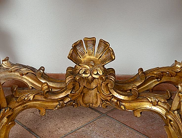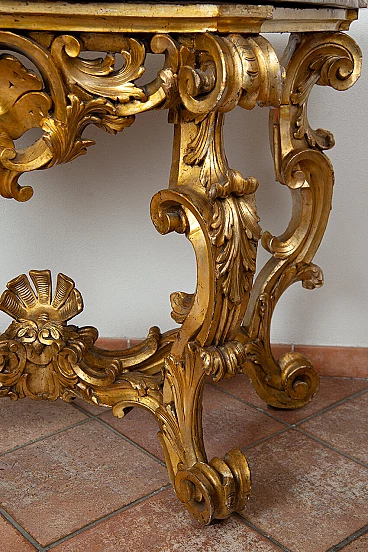 Consolle Luigi XV romana in legno dorato e marmo, '700