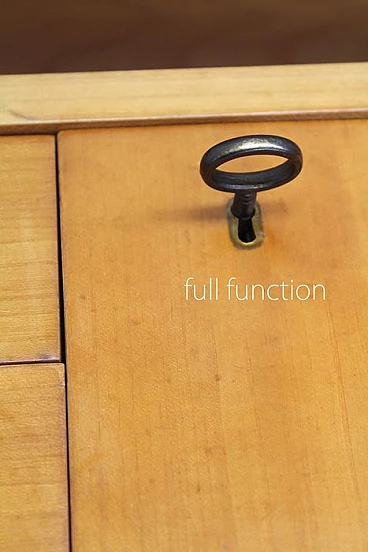 Costituita da dodici mensole (quattro larghe, otto più sottili), otto elementi laterali a griglia (uno adatto per riviste e giornali), un modulo con due cassetti, uno con anta e cassetti e uno con ante scorrevoli. Scomparti dotati di serratura e chiave funzionanti.