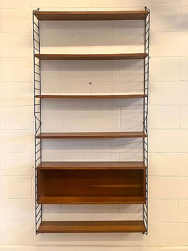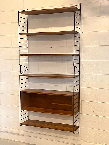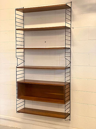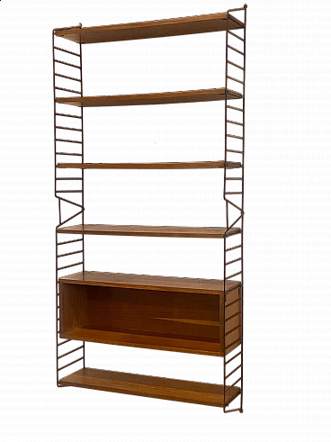 Libreria String in metallo e teak impiallacciato di Nils Strinning per String Design AB, anni '60