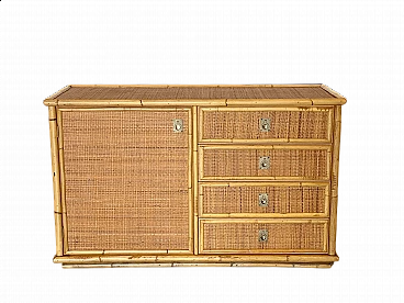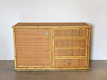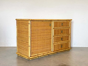 Credenza in vimini e bambù di Dal Vera, anni '70