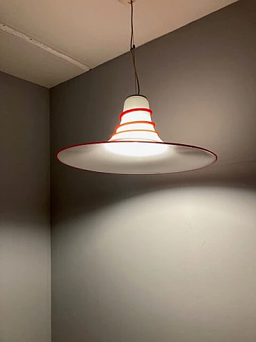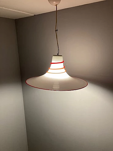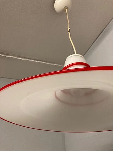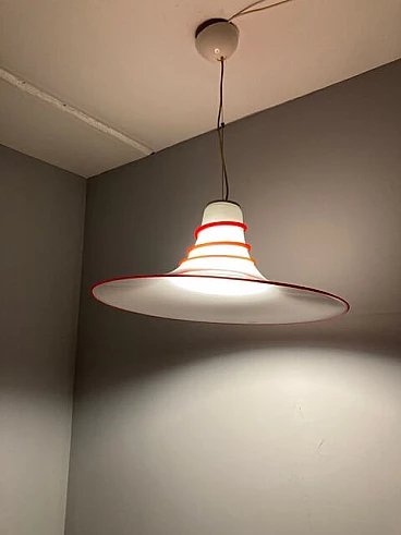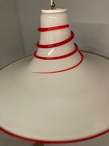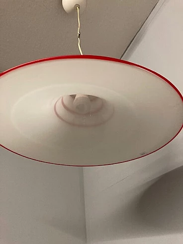 Lampada a sospensione in vetro di Murano bianco e rosso, anni '70