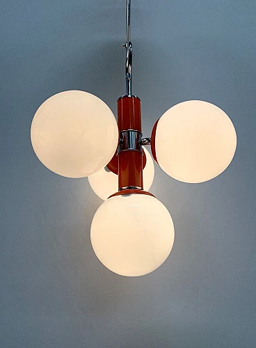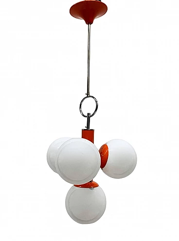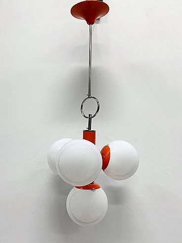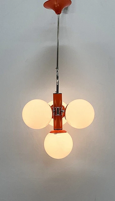 Lampadario in vetro e metallo arancione attribuito a Stilnovo, anni '60