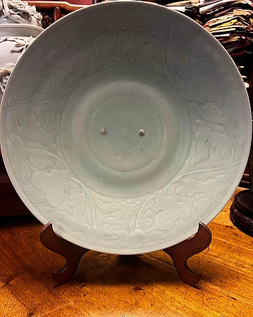 Piatto grande in ceramica Celadon con fantasia floreale, fine '800