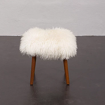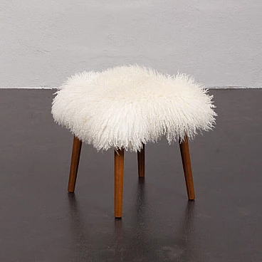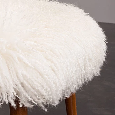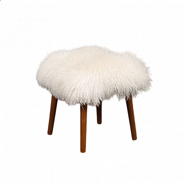 Semplice ma elegante, questo poggiapiedi danese è stato progettato negli anni '60. Rivestito con pelle di pecora bianca a pelo lungo, offre un look unico che crea un'incredibile sensazione in qualsiasi interno. Inoltre, la lana di pecora ha grandi proprietà antiallergiche e fornisce un equilibrio elettrostatico, molto importante negli interni contemporanei pieni di materiali artificiali. Le solide gambe affusolate in teak conferiscono eleganza e leggerezza tipiche del design danese di metà secolo. Le gambe sono rimovibili per un trasporto più comodo.