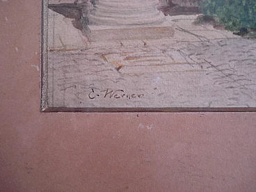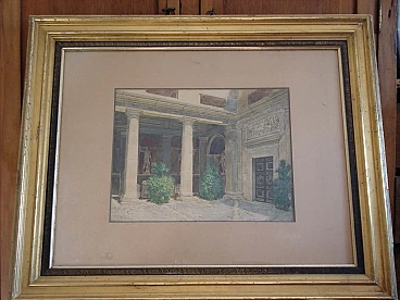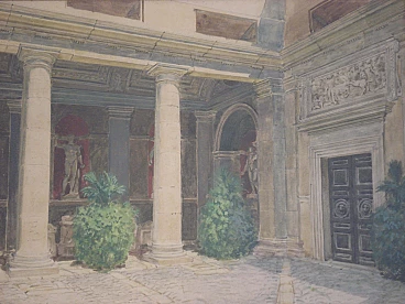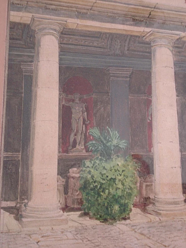 Carl Friedrich Heinrich Werner, Portico pompeiano, acquerello su carta, '800
