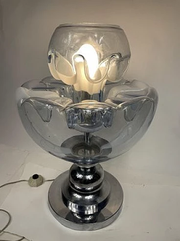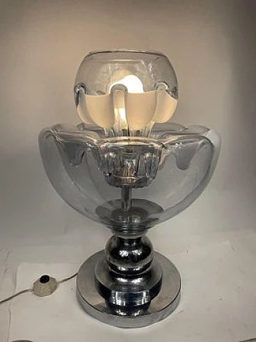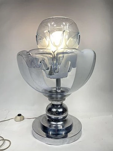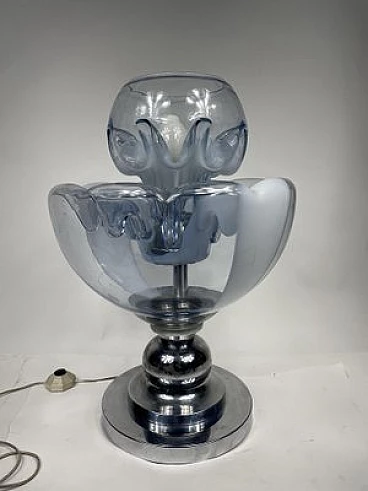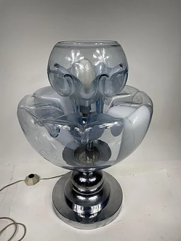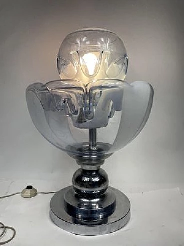Lampada da tavolo in vetro di Murano e acciaio cromato nello stile di Toni Zuccheri per Mazzega, anni '60