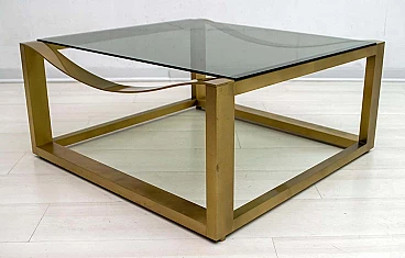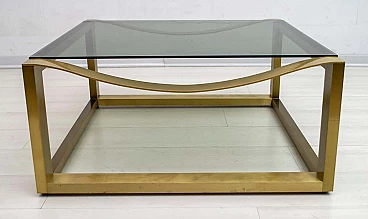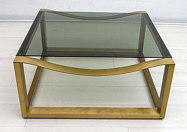 Tavolino in ottone massiccio con piano in vetro fumè di Luciano Frigerio, anni '70