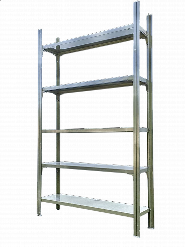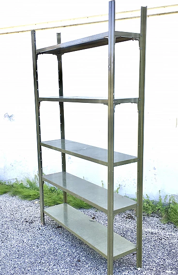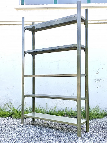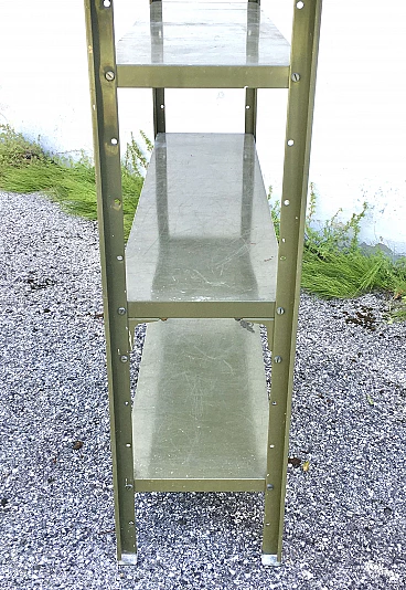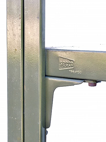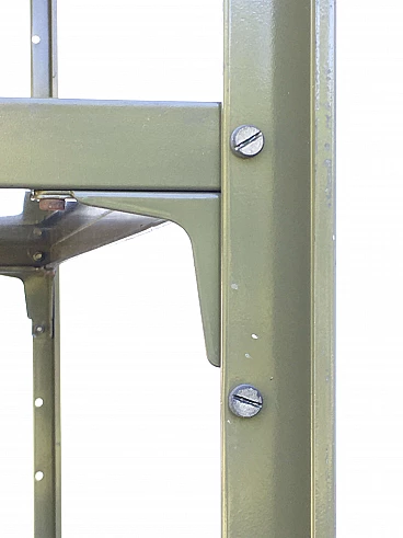 Libreria a scaffali di modernariato vintage anni '70 prodotta dalla nota fabbrica Secco in provincia di Treviso. Si tratta di scaffalature molto robuste ma dal design leggero che si adatta facilmente ad un arredo industrial moderno e giovanile. Caratterizzata da profili in acciaio verniciato, con interessante sistema di assemblaggio con staffe che ne aumentano la tenuta e la stabilità. Prodotto di alta qualità. Lo stato di conservazione è da ritenersi buono ed adeguato alla tipologia di articolo che a suo tempo non fungeva da elemento di arredo come potrebbe capitare oggi. La verniciatura in alcuni punti manca ma il tutto da il tipico fascino degli oggetti vintage.