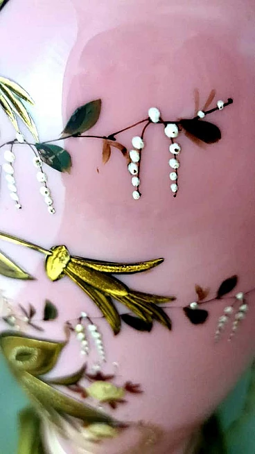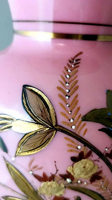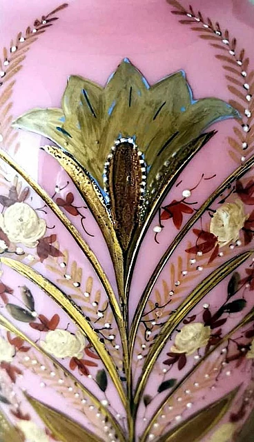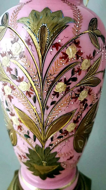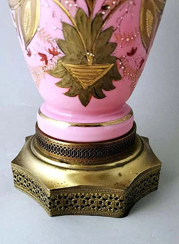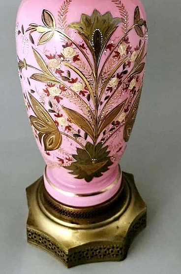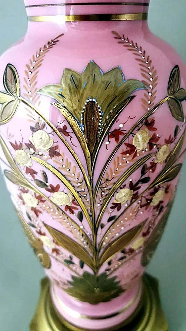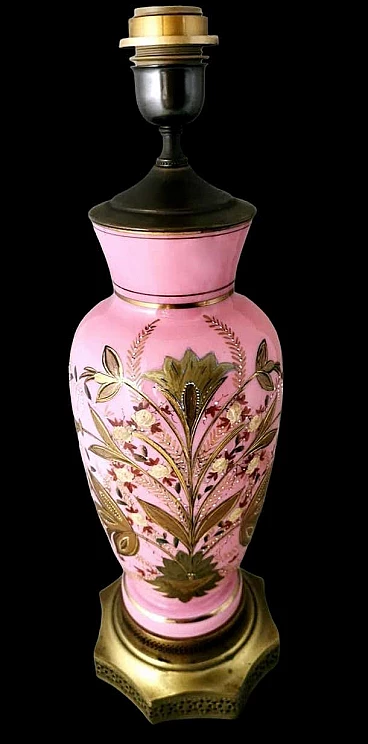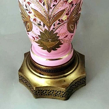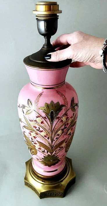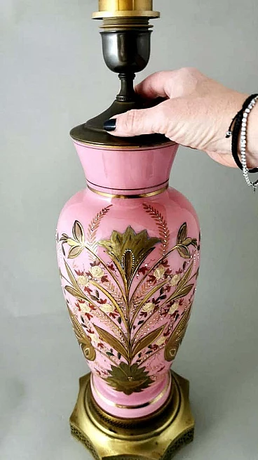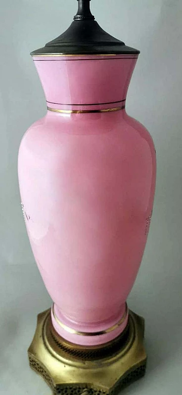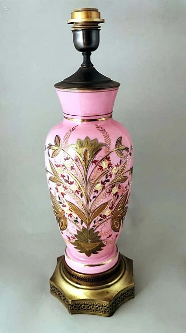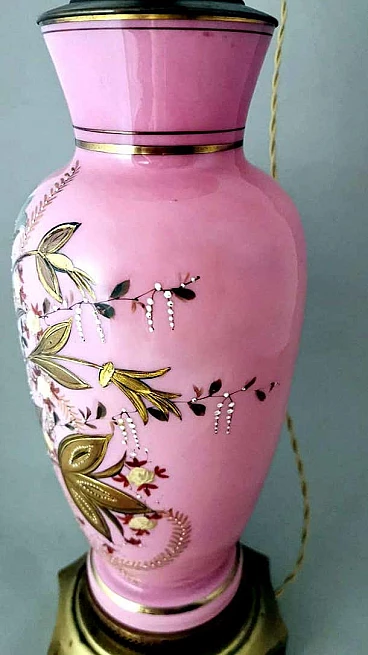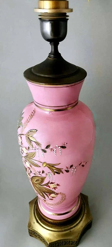 Lampada da tavolo in stile Napoleone III in vetro opalino dipinto a mano, fine '800