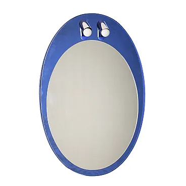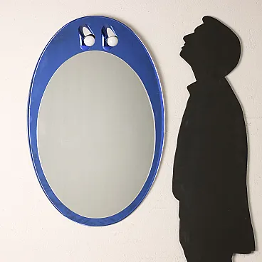 Specchio da parete con luci in vetro blu di Metalvetro Siena, anni '70
