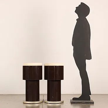 Coppia di sgabelli in legno laccato e similpelle, anni '70