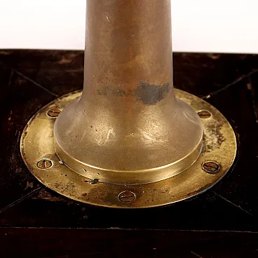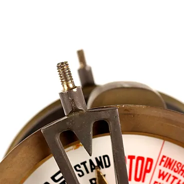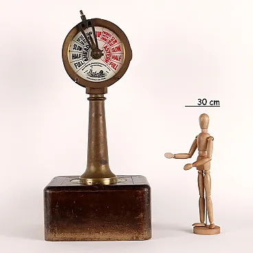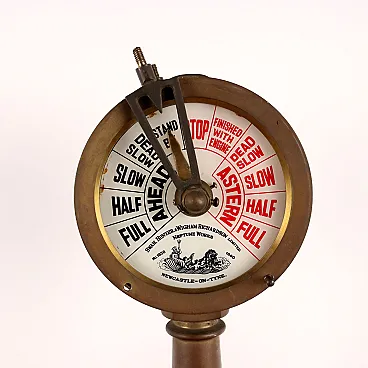 Telegrafo da nave di Swan Hunter & Wigham Richardson Ltd, realizzato in Inghilterra negli anni '40. Struttura in ottone e base quadrata in legno. Sul quadrante scritte in rosso e nero, al centro marchio della manifattura. Presenta segni di usura ed evidenti mancanze tra cui un vetro di copertura.