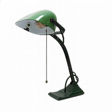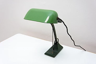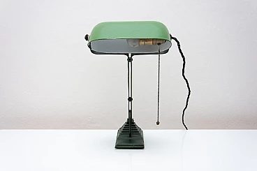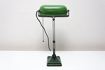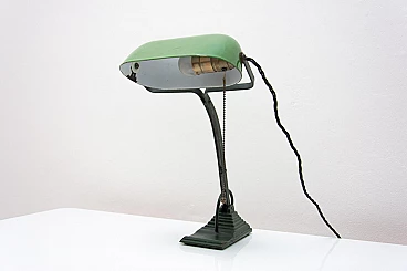 Lampada da tavolo ministeriale Art Déco in metallo verde, anni '30