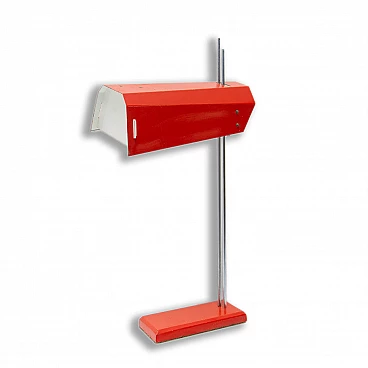 Lampada da scrivania con struttura cromata e paralume rosso di Josef Hurka per Napako, anni '60