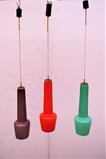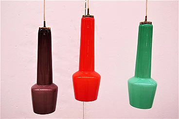 Tre lampade da soffitto in vetro incamiciato di Stilnovo, anni '50, firmate