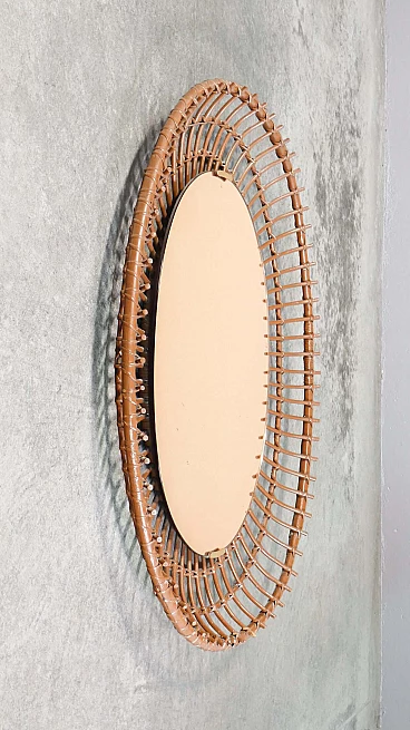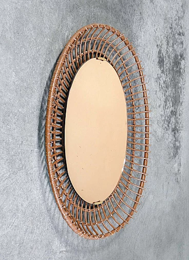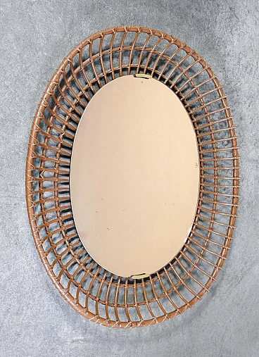 Specchio da parete in bambù di Santambrogio & De Berti, anni '60