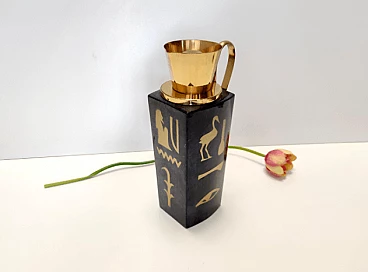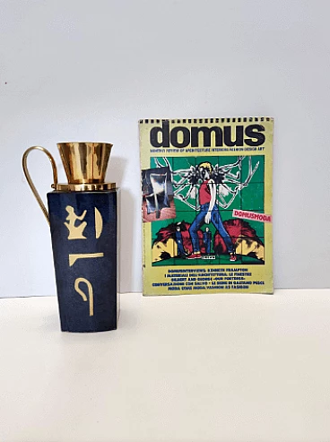 Thermos in pergamena nera e ottone di Aldo Tura per Macabo, anni '60