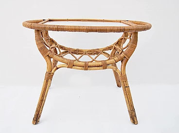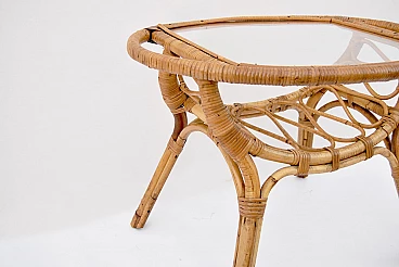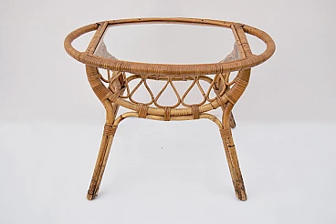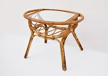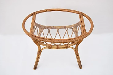 Tavolino in bambù e vimini con piano in vetro, anni '60