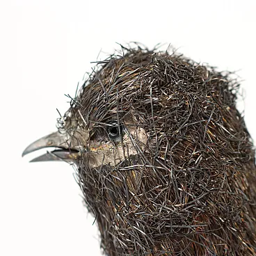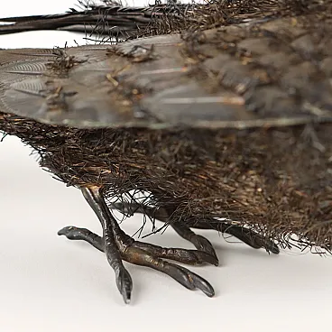 Uccello in argento 925 di Nava & Nencini, anni '60-'70. Argento inciso e lavorazione con fili d'argento nello stile di Buccellati. Marchi dell'argento e della manifattura sotto l'ala destra. Grammi 150.