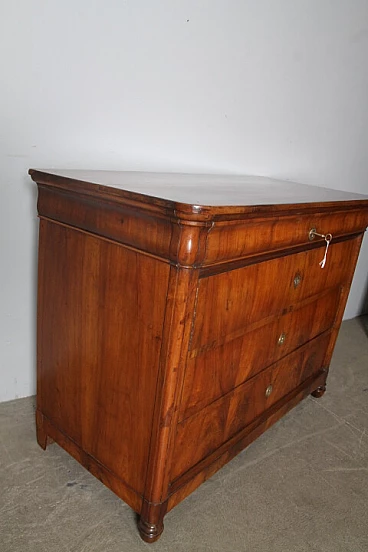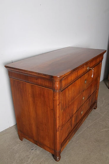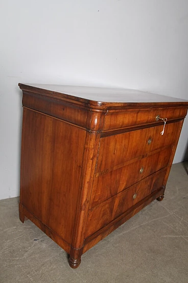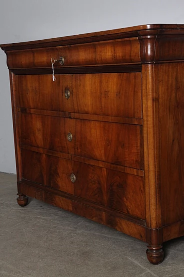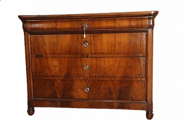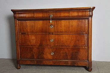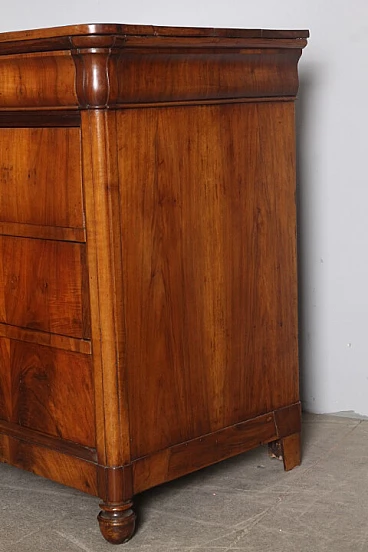 Cassettone Luigi Filippo cappuccino in noce massello con piedi a pigna, 1840