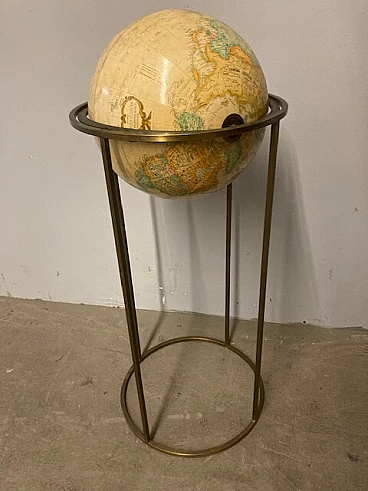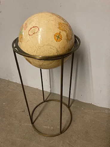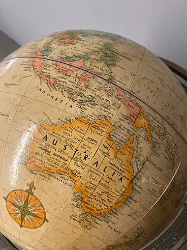 Mappamondo girevole in carta con struttura in metallo, anni '60