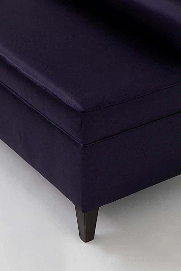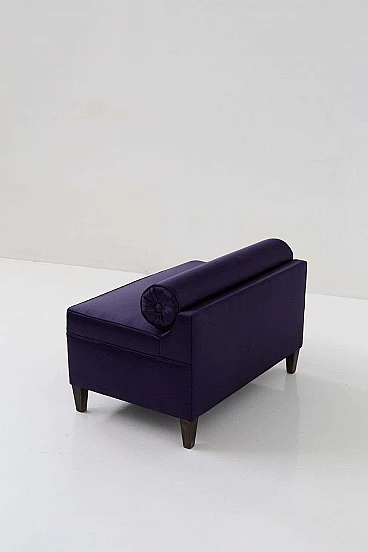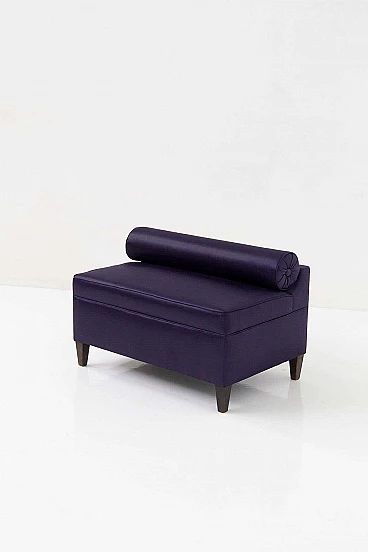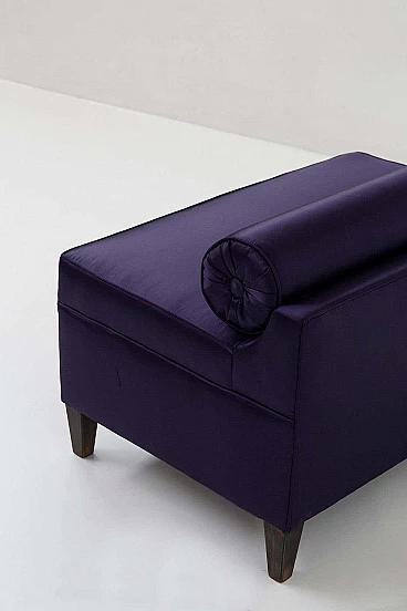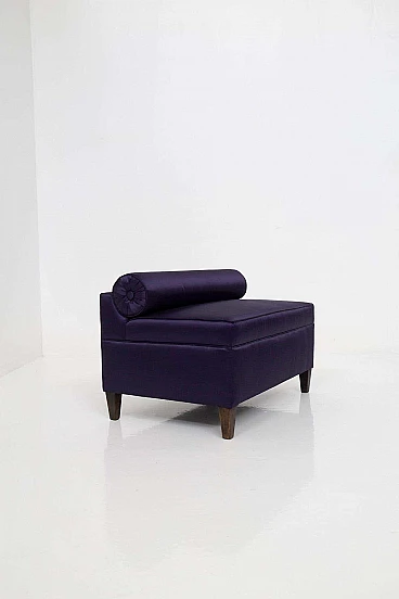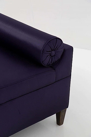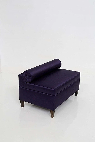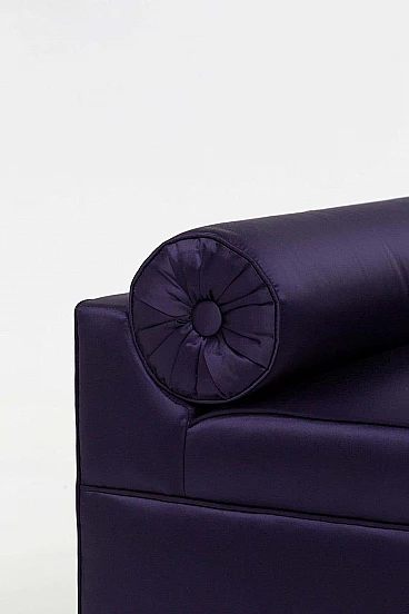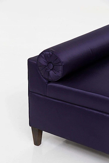Divanetto in raso viola con cuscino a rotolo, anni '60