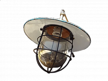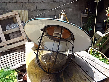 Lampada industriale in metallo giallo e blu di Palazzoli, anni '60