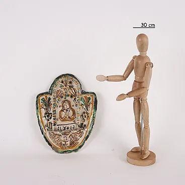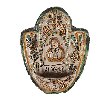 Acquasantiera in ceramica di manifattura di Cerreto Sannita, inizio '800