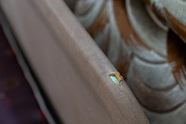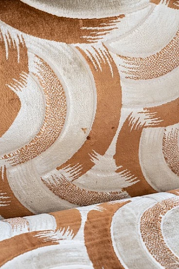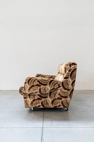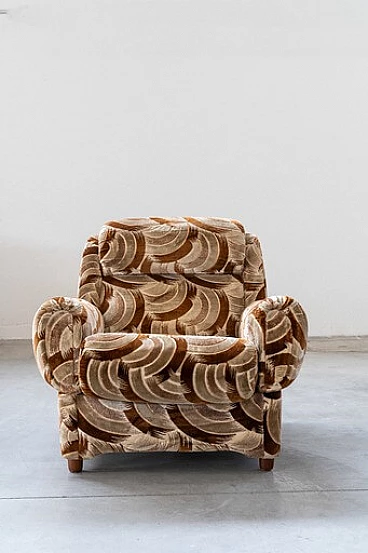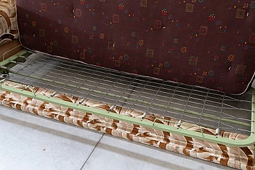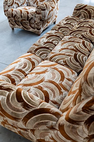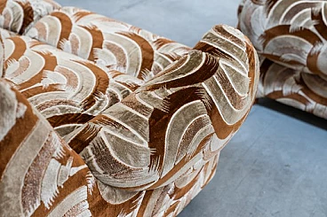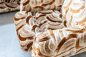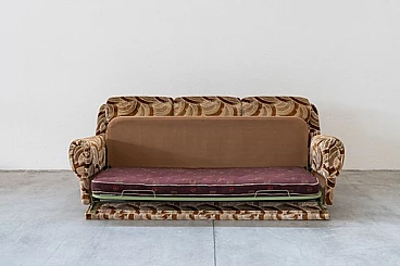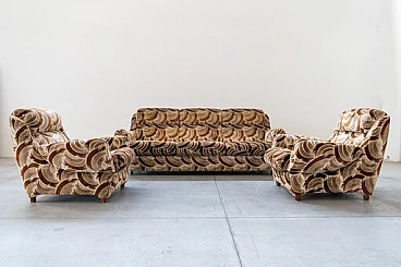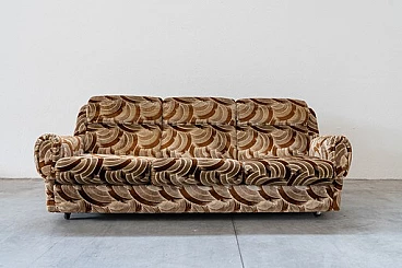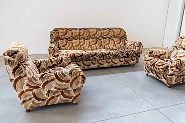 Divano-letto a tre posti e coppia di poltrone in ciniglia, anni '70