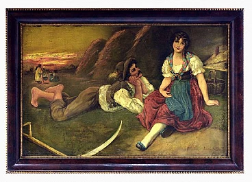 Eduardo De Blasi, coppia di paesani, dipinto a olio su tela, inizio '900