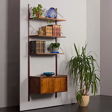 Libreria modulare in palissandro danese con mobile ad ante scorrevoli di Preben Sorensen per PS System, anni '60