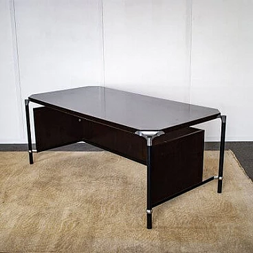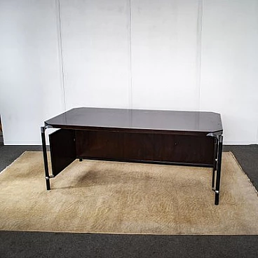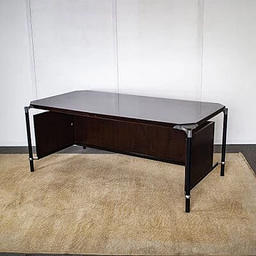 Scrivania in legno e acciaio con protezione per le gambe di Ico & Luisa Parisi per MIM Roma, anni '60