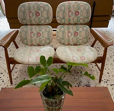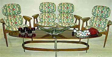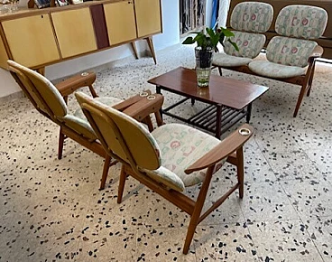 Divano e coppia di poltrone di Zanuso per Poltronova con tessuto Estate di Gio Ponti, anni '50
