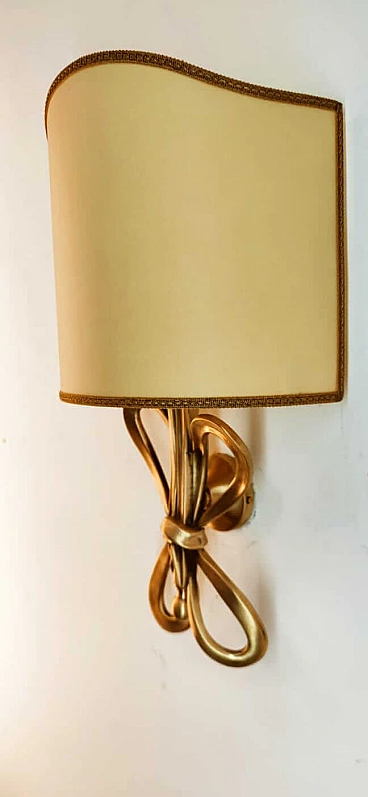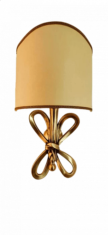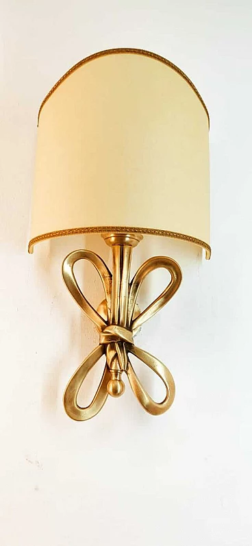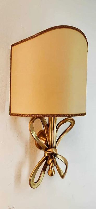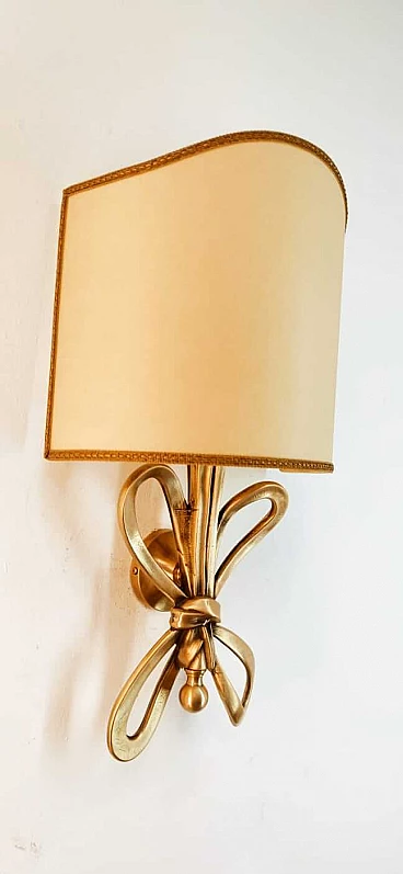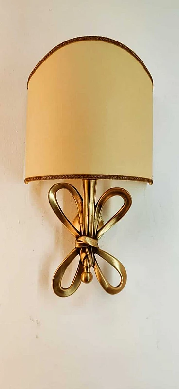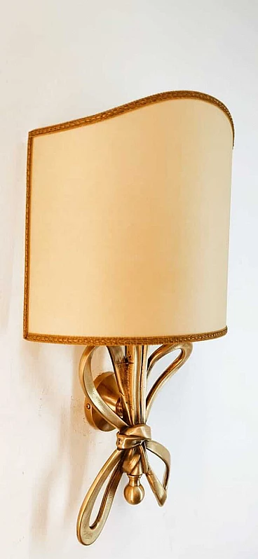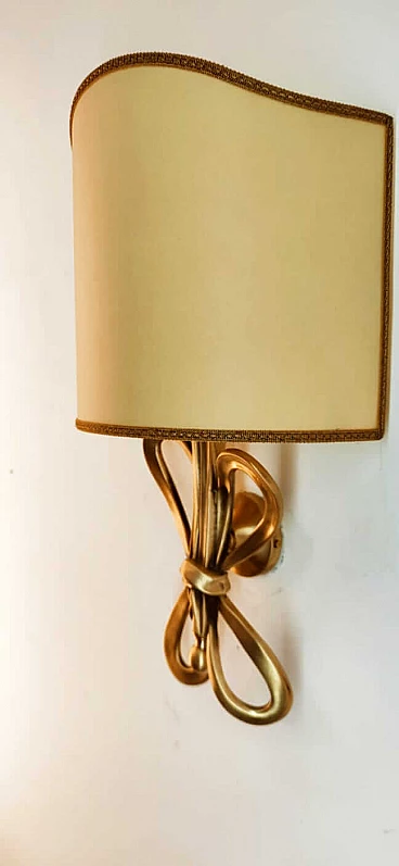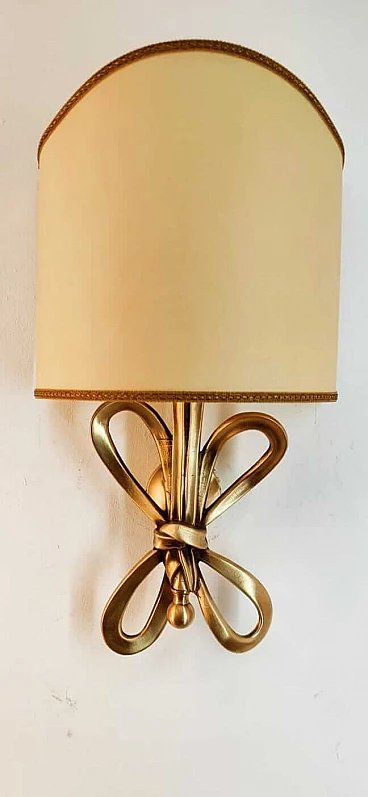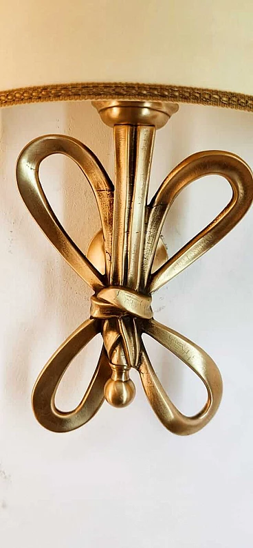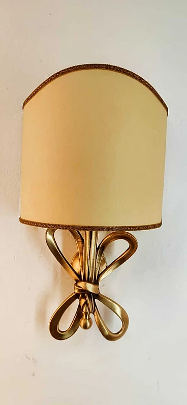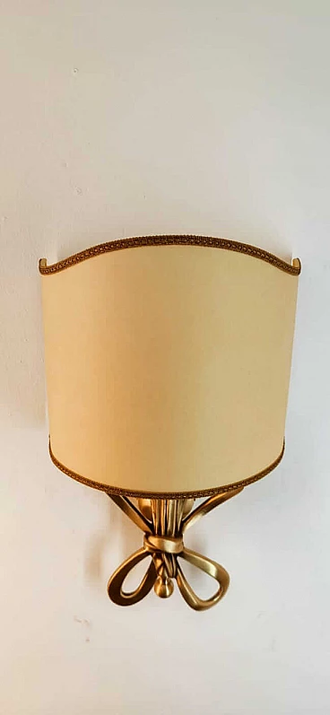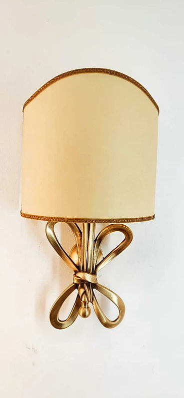 Applique con fiocco in ottone e diffusore a ventola in pergamena, anni '60