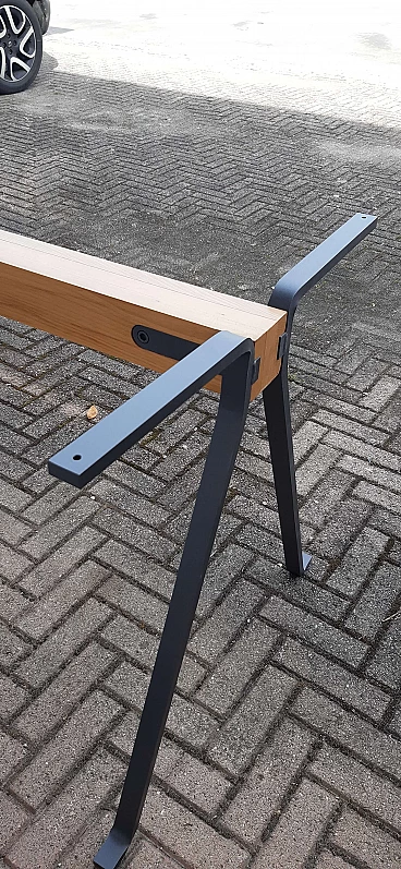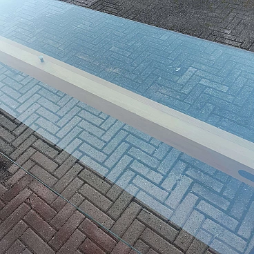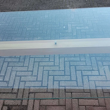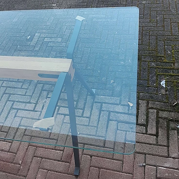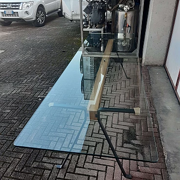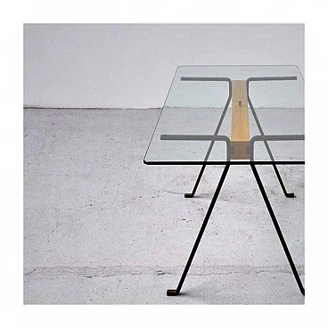 Tavolo Frate in metallo, legno e cristallo di Enzo Mari per Driade, anni '70