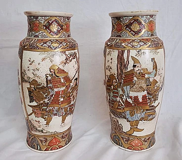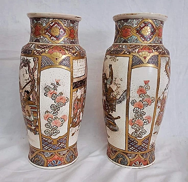 Coppia di vasi in ceramica di Satsuma dipinta, fine '800