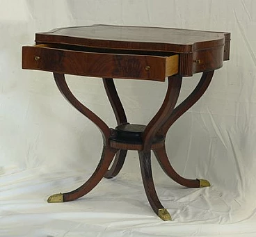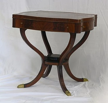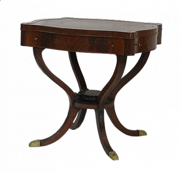 Tavolo da gioco in piuma di mogano con piedi e pomelli in bronzo, anni '20