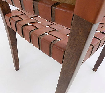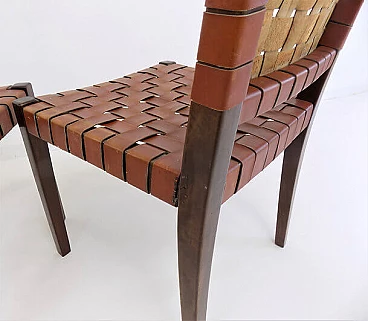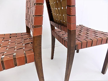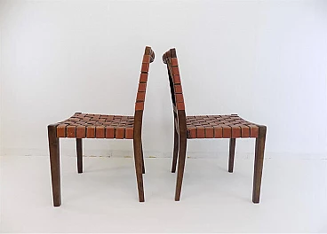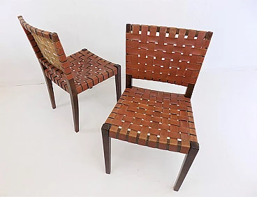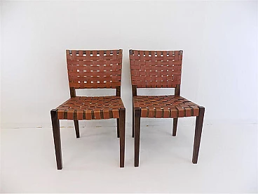Coppia di sedie in legno con intreccio in pelle marrone, anni '60