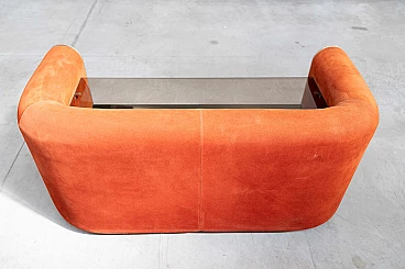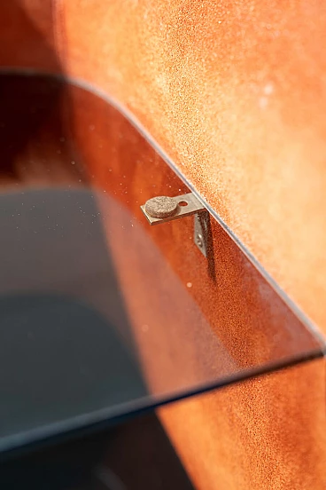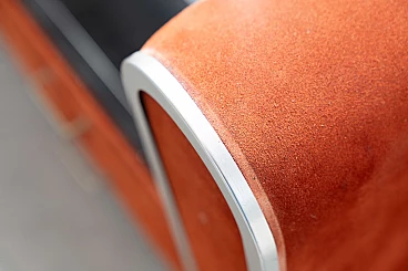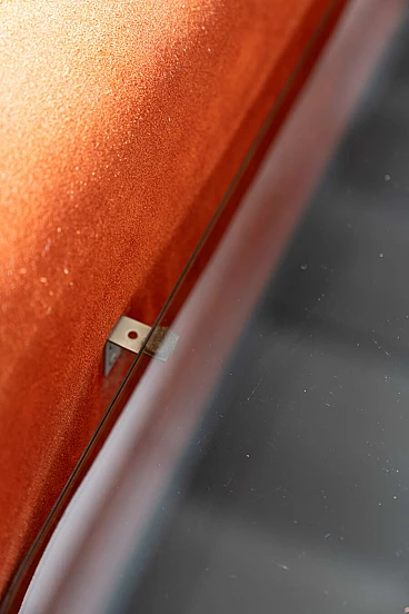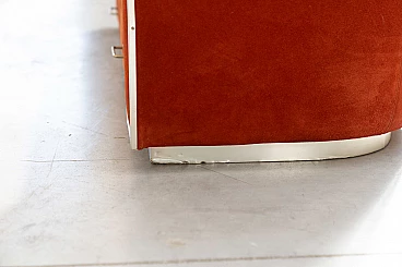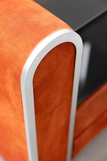 Comò in alcantara con ripiano in vetro fumè e profili in alluminio cromato, anni '70