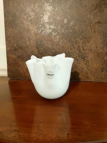 Vaso Fazzoletto in vetro di Murano opalino bianco