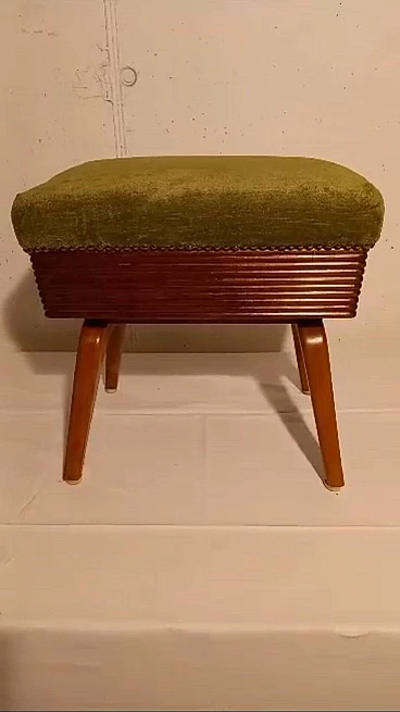 Poggiapiedi in noce con seduta in velluto verde di Osvaldo Borsani, anni '40