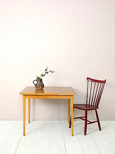 Tavolo allungabile in betulla con piano in formica, anni '60