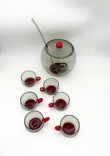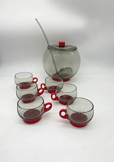 6 Tazzine da caffè e caraffa con mestolo in vetro di Murano attribuiti a Venini, anni '30