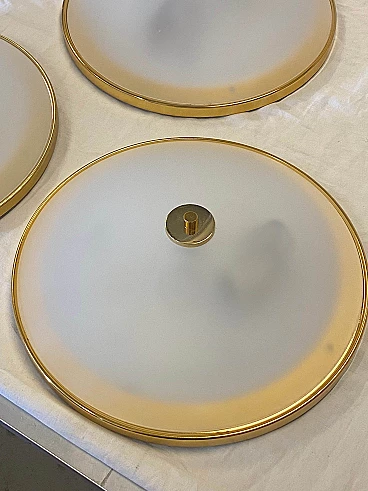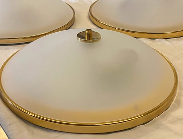 3 Plafoniere in ottone e vetro satinato, anni '80