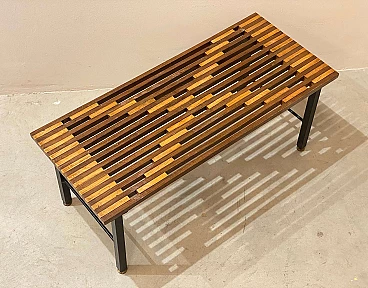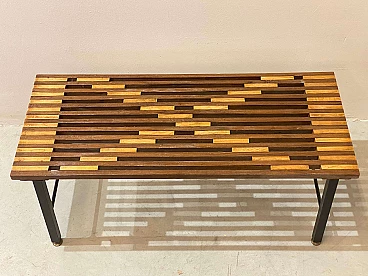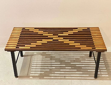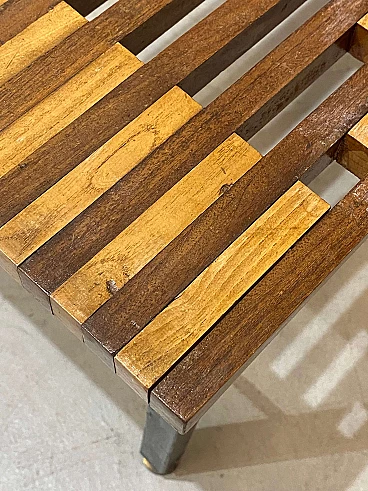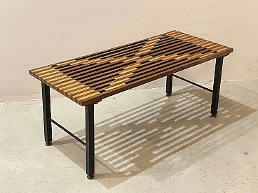 Panchetta con struttura in ferro laccato nero e seduta in teak, anni '60