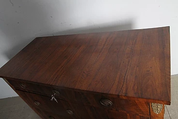 Cassettone Impero in massello di pioppo e noce, inizio '800