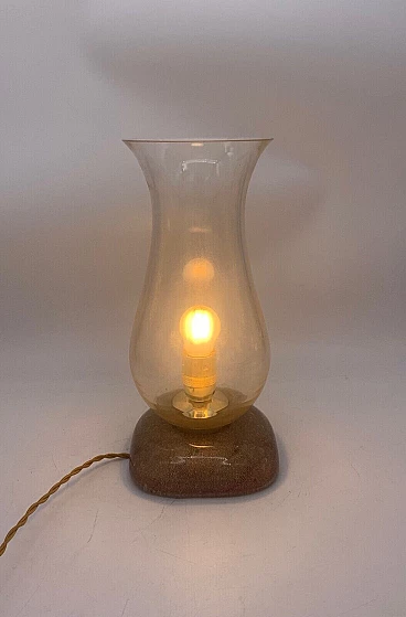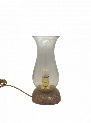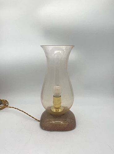 Lampada da tavolo in vetro trasparente, rosso e dorato attribuita a Seguso, anni '60